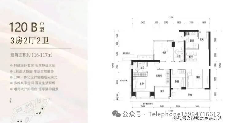 117㎡的3房2厅2卫,B户型(2栋4单元01.02.05/3栋2单元02/05户型),设计的是经典竖厅格局,客厅3.8米开间,LDKB一体化设计,3个卧室分别做到了主卧28.6㎡/次卧9.6㎡/次卧7.05㎡(包含墙体飘窗),客厅连接次卧出6.15米长的宽景大阳台,U型厨房,卫生间干湿分离,得房率约90%(包含赠送),东南或正东朝向。其实也可以改4房。