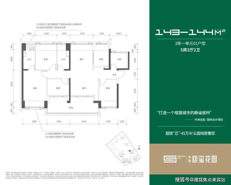 3栋1-2单元总高48层,3-5单元高31层,4栋为18班制幼儿园,5栋1-3单元总高48层。