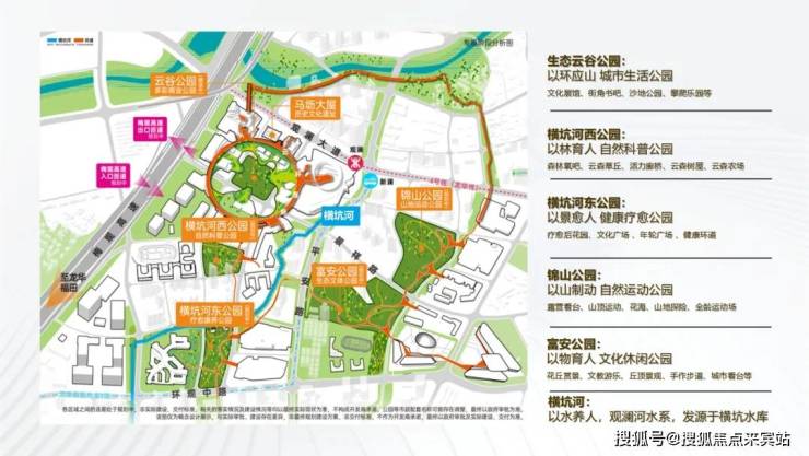 5大公园融入社区,起步即城市级公建,造就超越当代的都市活力地标环;统合历史文脉、自然山水、城市建设、多元业态,构建全生命周期的城市中心理想典范