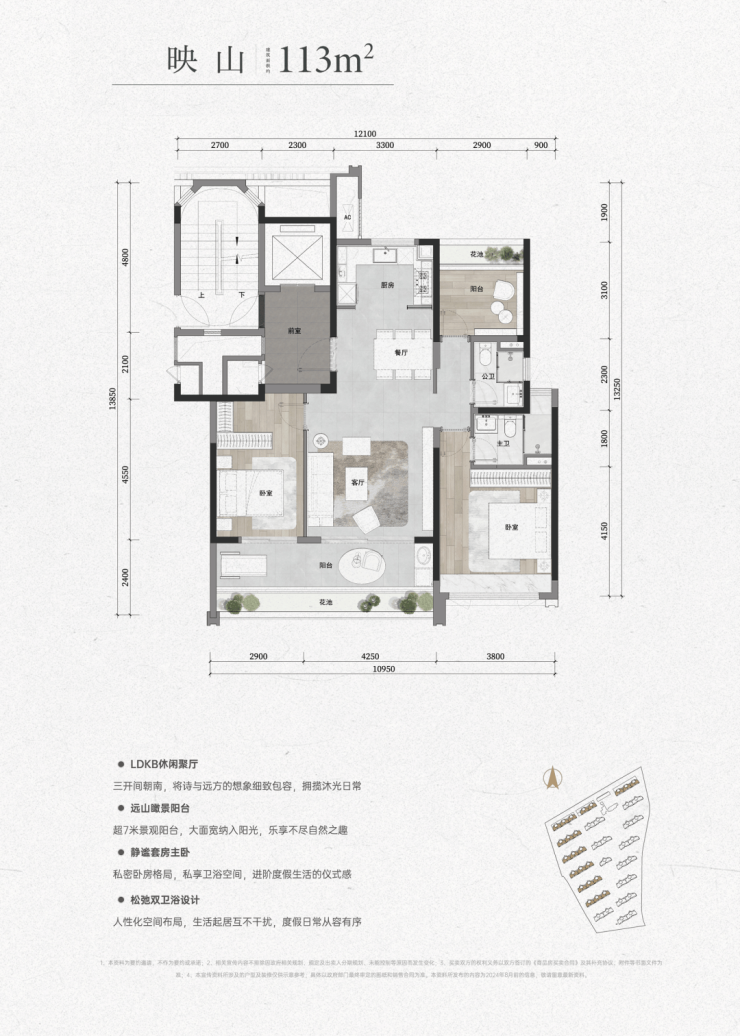 建面约113㎡ 的户型,就已经为业主带来更多的私密性和更大的视野范围。