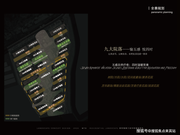 景观设计则 采用 “一轴一环”布局 ,通 过九大院落的启承转合及层层递进的造景手法来强调东方雅奢调性,为业主勾勒一幅“归家即度假”的写意山水画。