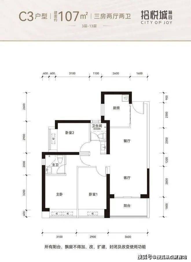107㎡的3房2厅2卫:设计的竖厅格局,客厅3.6米开间,西南朝向