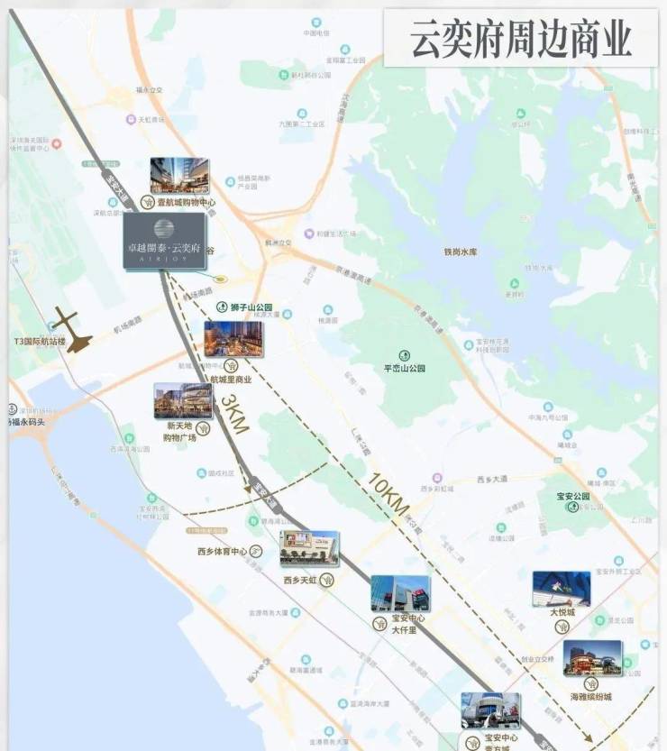 ②周边有航城里商业、壹航城购物中心(后瑞店)、新天地购物广场、褔永天虹,西乡天虹多个百货围聚。