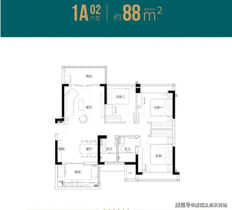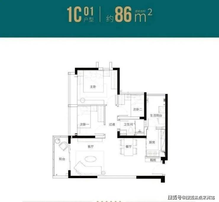 松茂御城2期的户型图还没有公布出来,可以先参考一期的户型设计。82㎡的3房2厅1卫(1栋C座01户型),设计的是竖厅南北通透格局,客厅3.6米开间,阳台西南朝向。