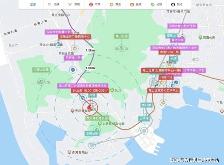 自驾方面,项目可通过小南山隧道或港航路汇入兴海大道,连通前海、后海、宝中等区域。但目前兴海大道通大货车,行车体验可能不太好,待妈湾海底隧道竣工后,大货车将走妈湾海底隧道,情况会得到改善。商业配套:项目自带4.6万㎡商业,1.5km范围内,分布着人人乐、华润万家、惠生活等商超,可满足日常所需。3km左右可达海上世界,距离在建的太子湾K11购物中心约2km。