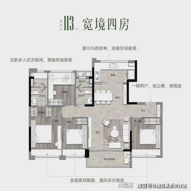3️⃣ 稀缺产品:80㎡做三房两卫(得房率90%),98㎡四房680万起,113㎡板式洋房仅剩10套!低密2.91容积率,6山2水环绕,推窗见绿。