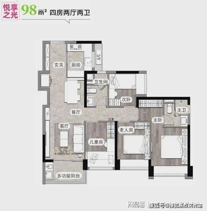 对于想要追求改善的购房者而言,建面约98㎡的四房户型足够你达成一步到位的终极目标。