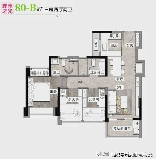 当然,如果你对居住的要求更高,那么建面约80㎡的三房户型可能会更加适合你。