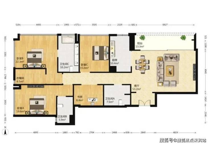 * 房型:4房2厅3卫 (双套间)