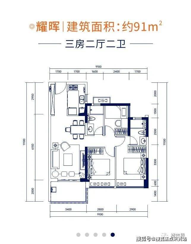 【耀晖】建筑面积约91㎡:三房二厅二卫