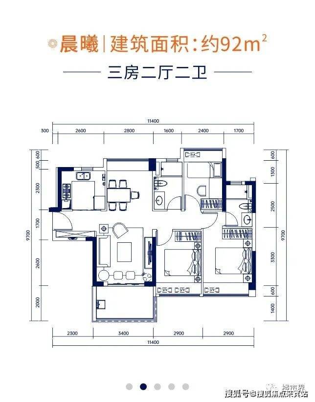 【晨曦】建筑面积约92㎡:三房二厅二卫