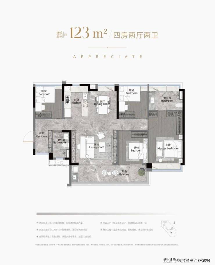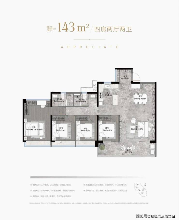 建面约103-188㎡南向阔景四房