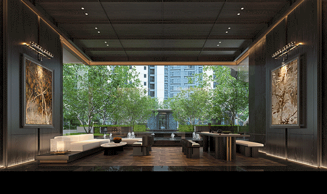 无论是行政酒廊还是悬浮茶舍,都能透过大面积玻璃,去欣赏来自园林美景。