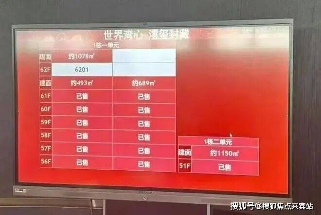 项目户型面积从约209平方米起步,带装修交付。开盘当日上午500平、700平及1150平的天际大平层首先宣布售罄,单价25-28万/㎡,总价1.3-3.3亿元。开盘单日销售额突破130亿元成交均价约18万元/㎡