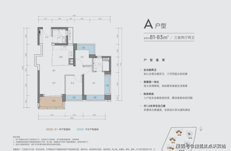竖厅设计,亮点在于主卧带双飘窗,设计两卫,但鸡肋的厨房,我实在不太明白,是不是卫生间真的比餐厅重要很多........