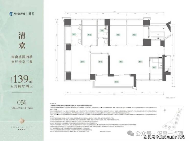 139m²的5房2厅2卫,折后总价692-7759万/套,单价4.98-5.46万/m²。