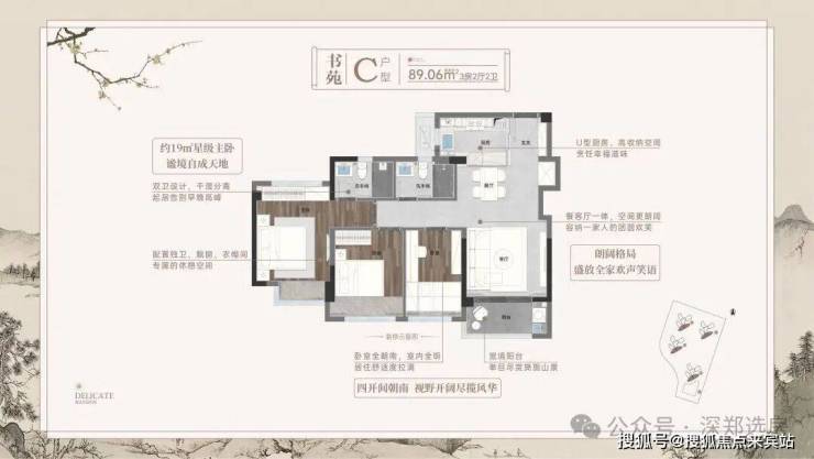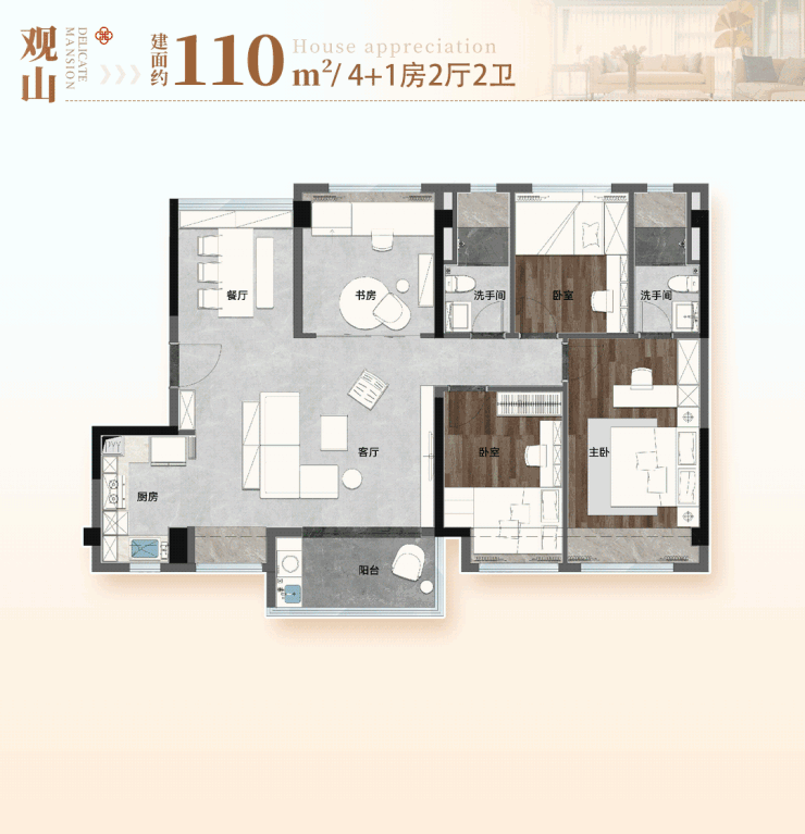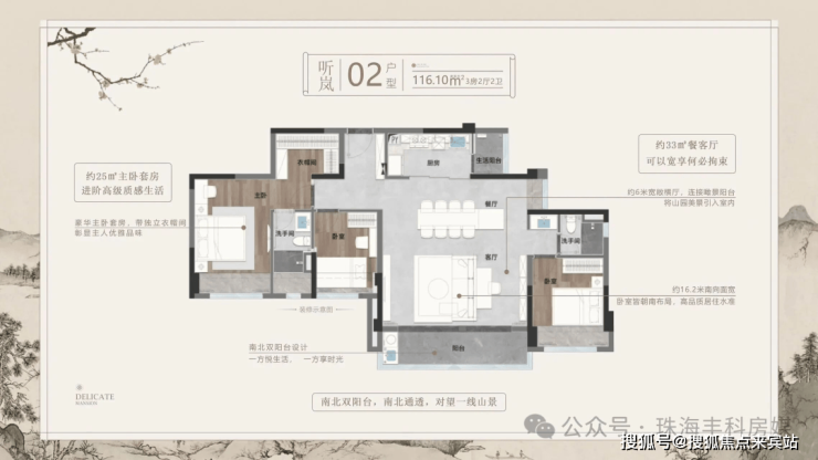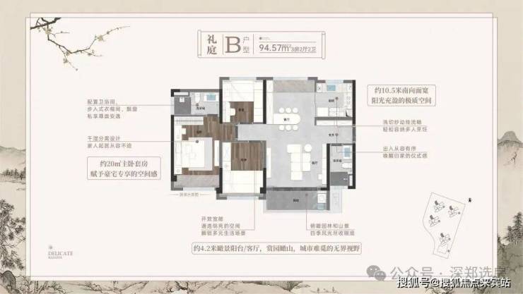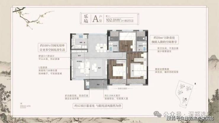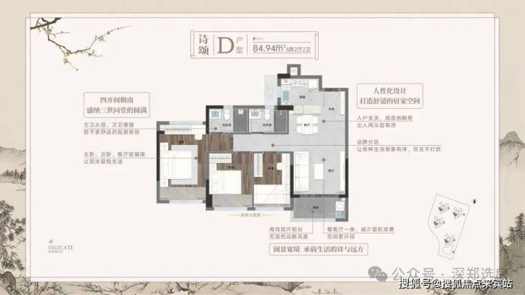 产品力凸显硬核优势,新宋式坡地园林搭配错落楼栋布局,最大化保留望山视野,架空层泛会所覆盖办公、阅读等全龄场景。83-110㎡三至四房户型近100%使用率,部分户型四开间朝南,LDKG一体化设计提升空间利用率,精装交付选用老板、汉斯格雅等一线品牌,配备中央空调与新风系统,细节拉满。