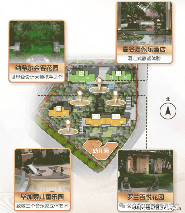 精心规划十字轴景观与四大国际化主题花园,融合马奎萨克式探幽意境、嘉佩乐式水景宁静,建筑立面光影呼应纳西尔雕塑语言,色彩节奏暗藏毕加索画作的现代艺术感。