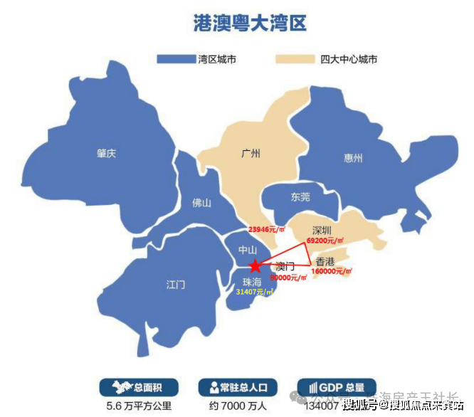 地处粤港澳大湾区几何中心,珠海、广州、深圳、香港、澳门环绕。10分钟到珠海主城中心,10分钟到珠海主城区,房价差1/4。
