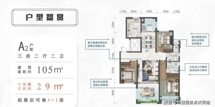 〖C2户型〗建筑面积:约70㎡拓展面积:约24㎡户型格局:二室二厅二卫(可改2+1房)