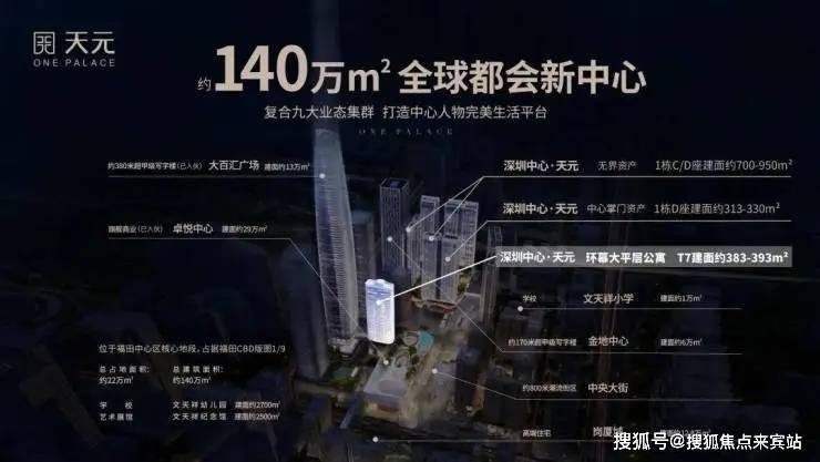 项目位于福田CBD核心区域,占地面积约22.3万㎡,总建筑面积约140万㎡,