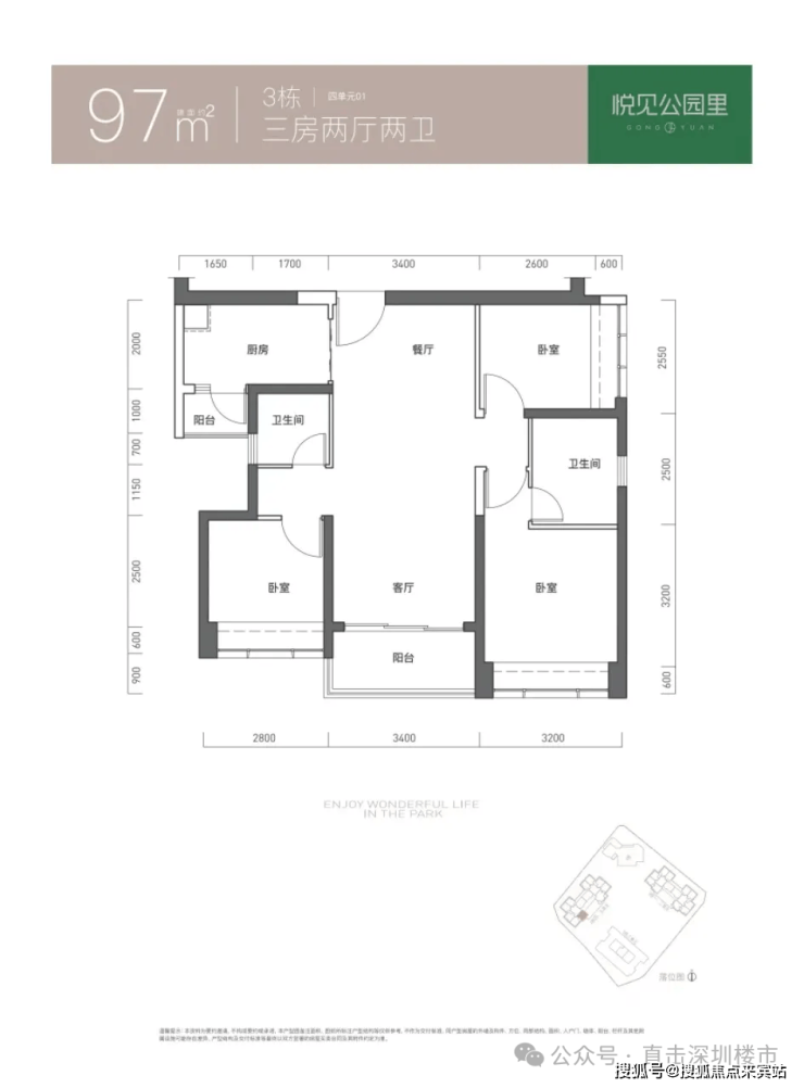97㎡的3房2厅2卫,折后总价365-366万/套,单价3.72-3.73万/㎡。