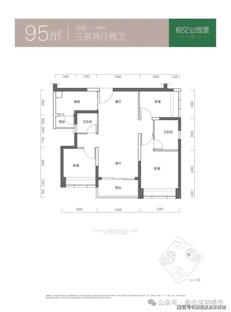 95㎡的3房2厅2卫,折后总价357-370万/套,单价3.75-3.89万/㎡。