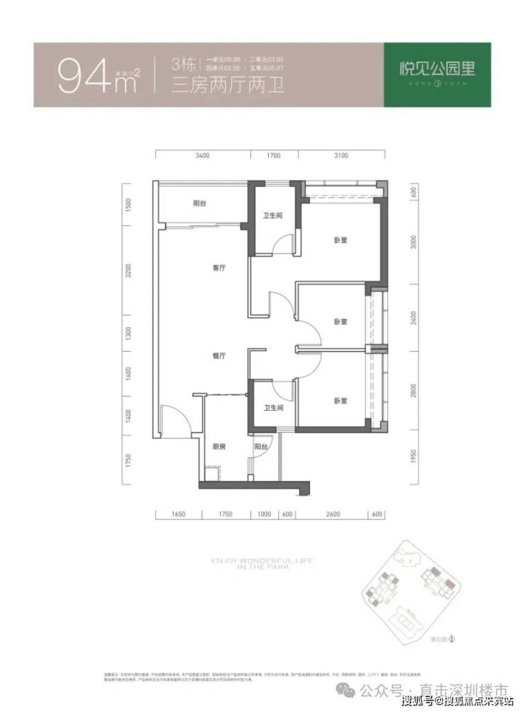 94㎡的3房2厅2卫,折后总价329-357万/套,单价3.5-3.79万/㎡。