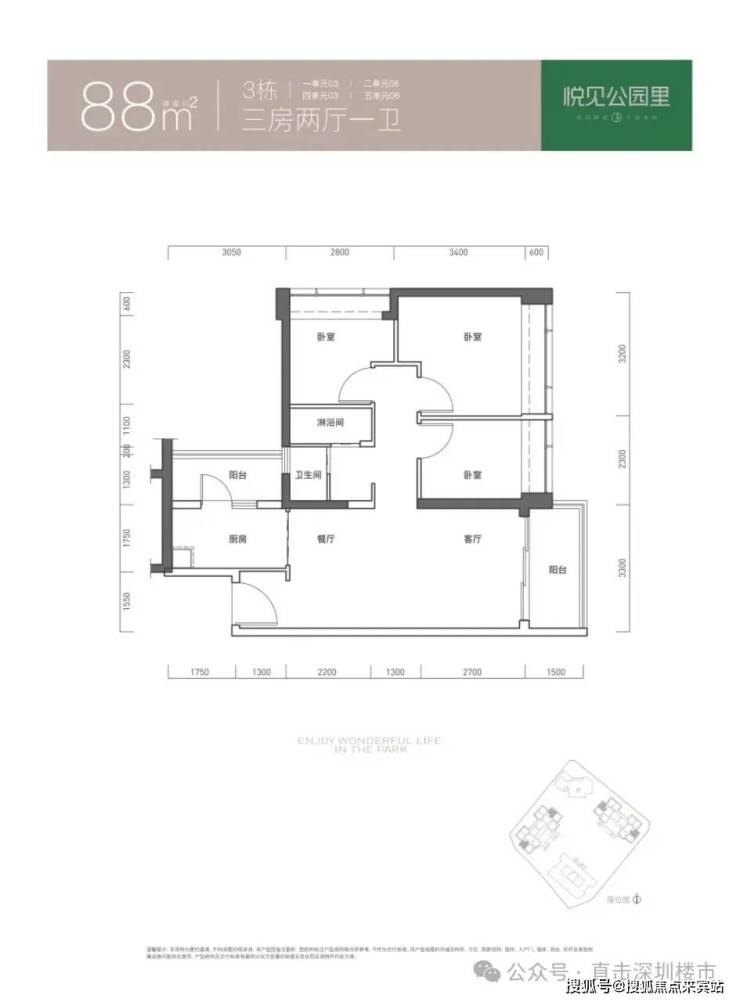 88㎡的3房2厅1卫,折后总价308-324万/套,单价3.5-3.68万/㎡。