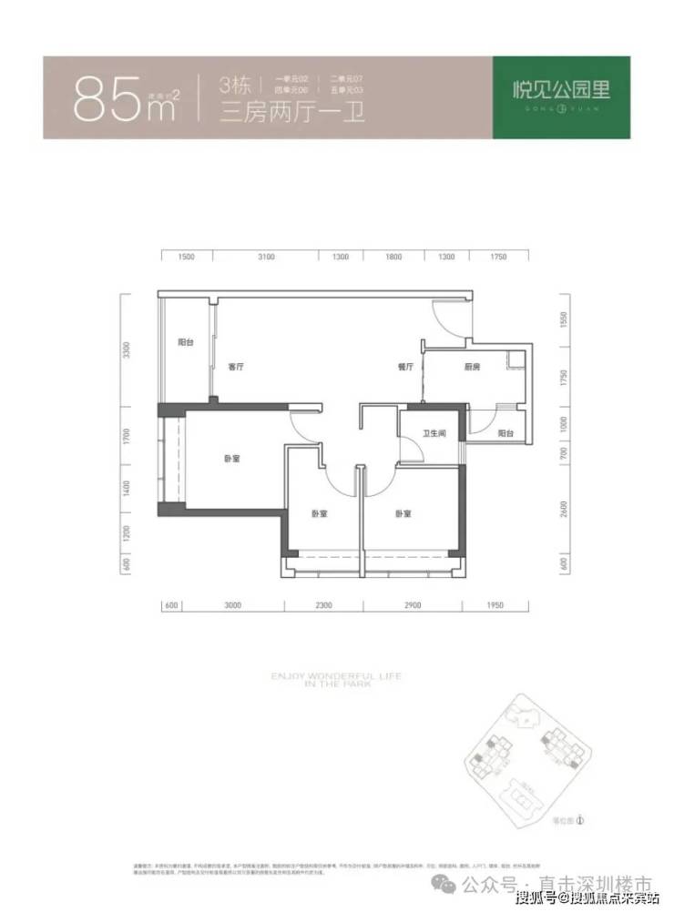 85㎡的3房2厅1卫,折后总价297-319万/套,单价3.49-3.75万/㎡。