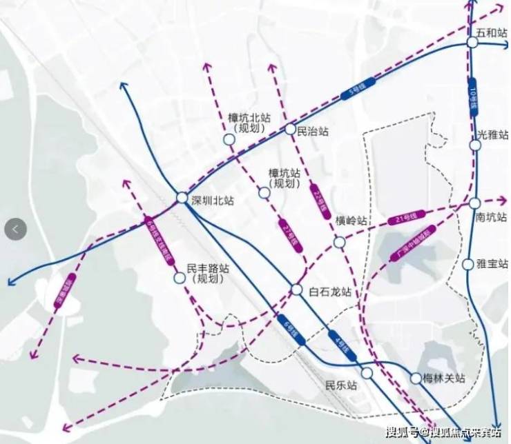 交通配套:规划共有4条地铁、1条城际,其中地铁4号线、6号线已建成,规划建设21号线、22号线(在建),以及规划广深中轴城际可使片区30分钟内快速连接前海、河套、留仙洞、光明等重点区域。