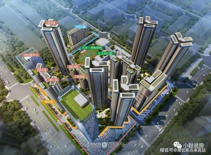 项目定位:会展核心旁,集品质住宅、高端公寓、甲级办公、约2.2万平特色商业街区、12年一站式教育于一体的约42万㎡全系生活大城