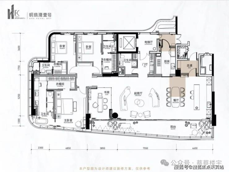 明珠湾壹号(C/D塔豪宅):仅100套,约320㎡及380㎡豪华海景大平层,带装修