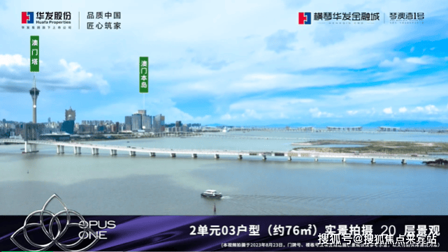 华发在金融岛内打造了鎏金海岸线天际物业——琴澳湾1号集群,位于金融岛岛尖,地理位置十分优越,不仅拥有约1.3KM的海岸线,还拥有独一无二的景观资源,东侧无遮挡眺望澳门城市景与海景,北侧看澳门本岛与澳门塔,纵揽两岸三地万亿海景,西、南两侧看金融岛内地标建筑。