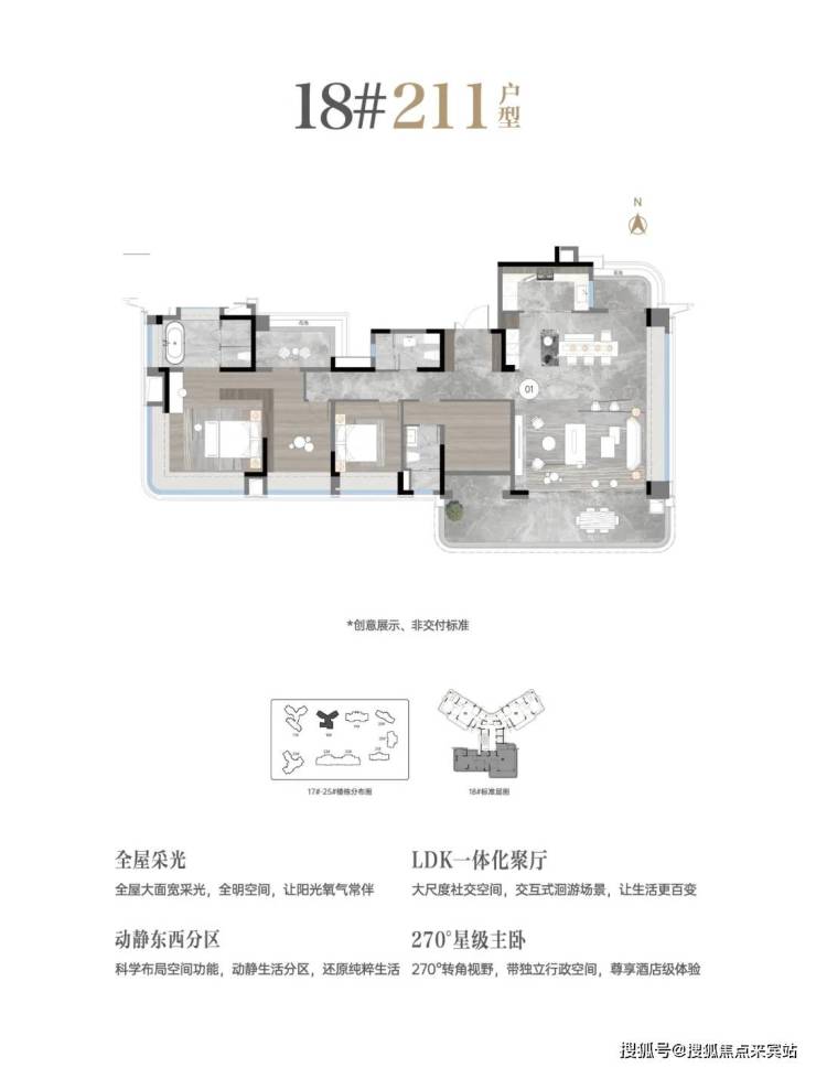 超薄平外立面,以大量玻璃幕墙、航空铝板设计,打造更具国际化的建筑形态。错落有致的新派建筑群,与CBD建筑群形成起伏天际线,家就是城市封面的一部分。