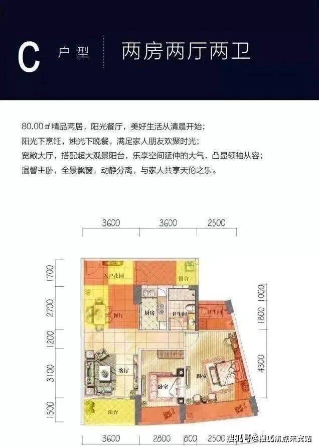 80.00㎡舒适两居,阳光餐厅,美好生活从清晨开始;阳光下烹饪,烛光下晚餐,满足家人朋友欢聚时光;宽奢大厅,搭配超大观景阳台,乐享空间延伸的大气;宽敞主卧,独立观景阳台,动静分离,与家人共享天伦之乐。
