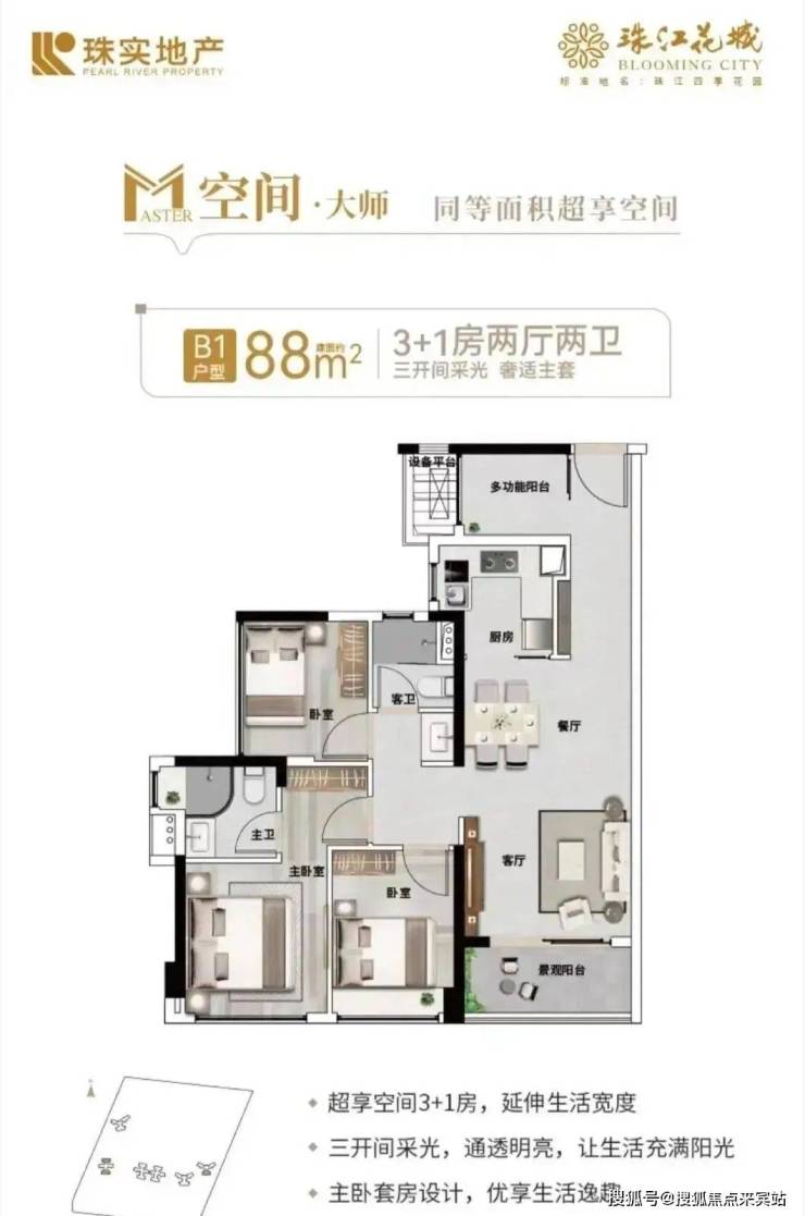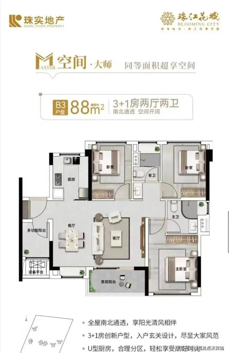 【王炸户型,88方3+1房2卫】