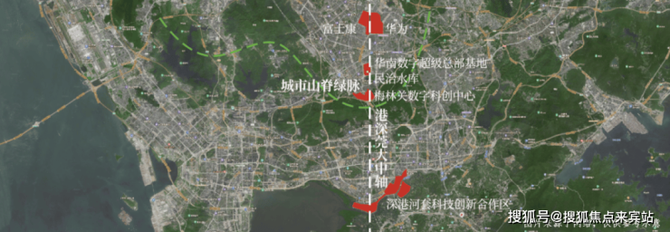 港深科技中轴之上,向南连接河套深港科技创新合作区、福田CBD,向北连接坂雪岗科技城,享有龙华福田双中心配套服务。