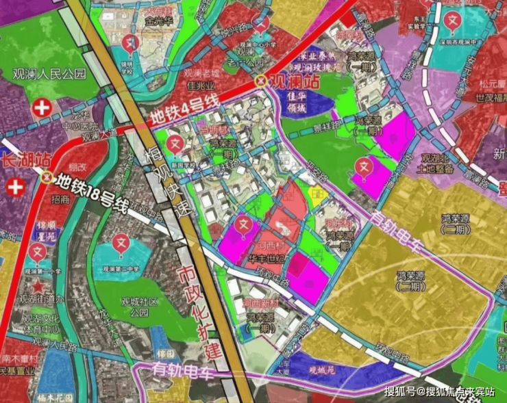 观城和鸿荣源以往甚至全深圳以往的大型旧改比较大的区别是,项目规划建设5大公园融入社区,改变了过去旧改项目都是超高容积率的惯例(楼盘高容积率,但片区不算是),并且规划了高速公路(梅观高速)直接连通项目车库,这是极具创新的实践。