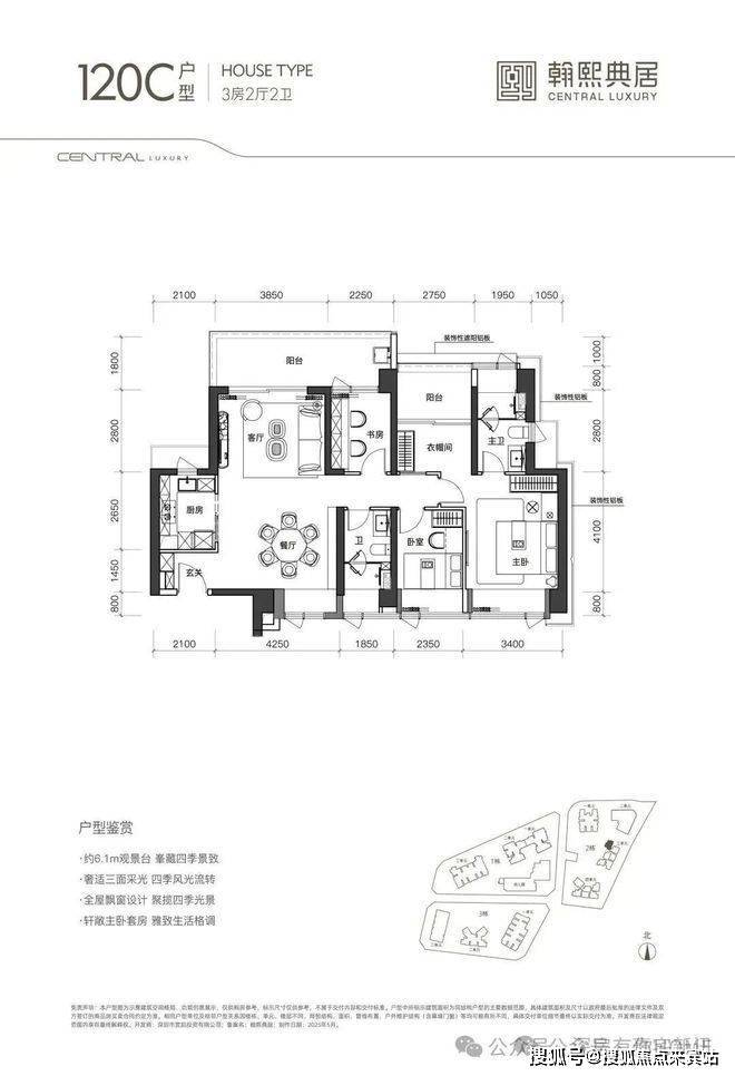 120㎡的4房2厅2卫竖厅格局客厅与卧室连通9.6㎡超大阳台,主卧带5.2㎡衣帽间,还有观景小阳台,主要为东南和西南朝向。🦙 翰熙典居售楼处热线:400-858-9905(开发商直营|无中介|24小时一对一咨询|购房流程协助)