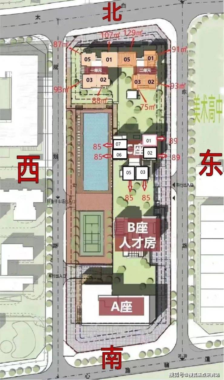 小区由2栋住宅,1栋办公、公寓,1栋保障房组成,住宅户数为295户,车位1050个。住宅61110㎡(含保障性住房11000㎡)、商业7260㎡、办公5600㎡、商务公寓5500㎡、公共配套设施8050㎡和地下商业2000㎡。