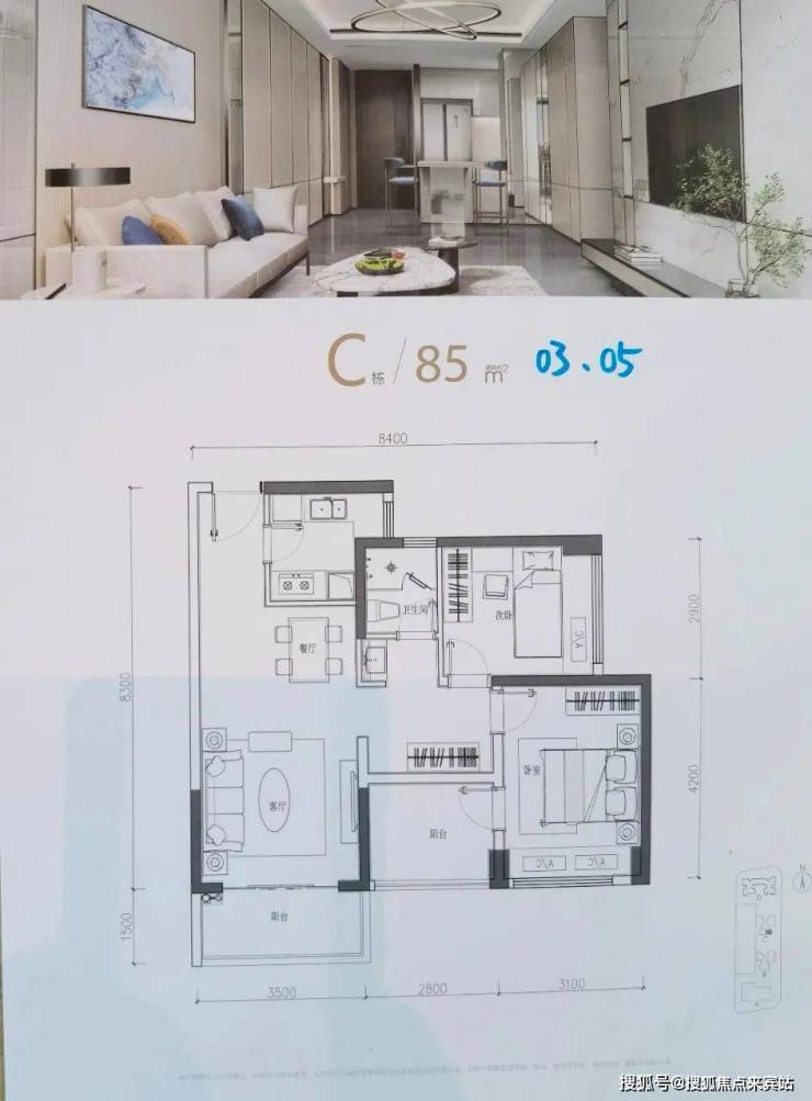 C座03、05户型:85㎡ 3房2厅1卫