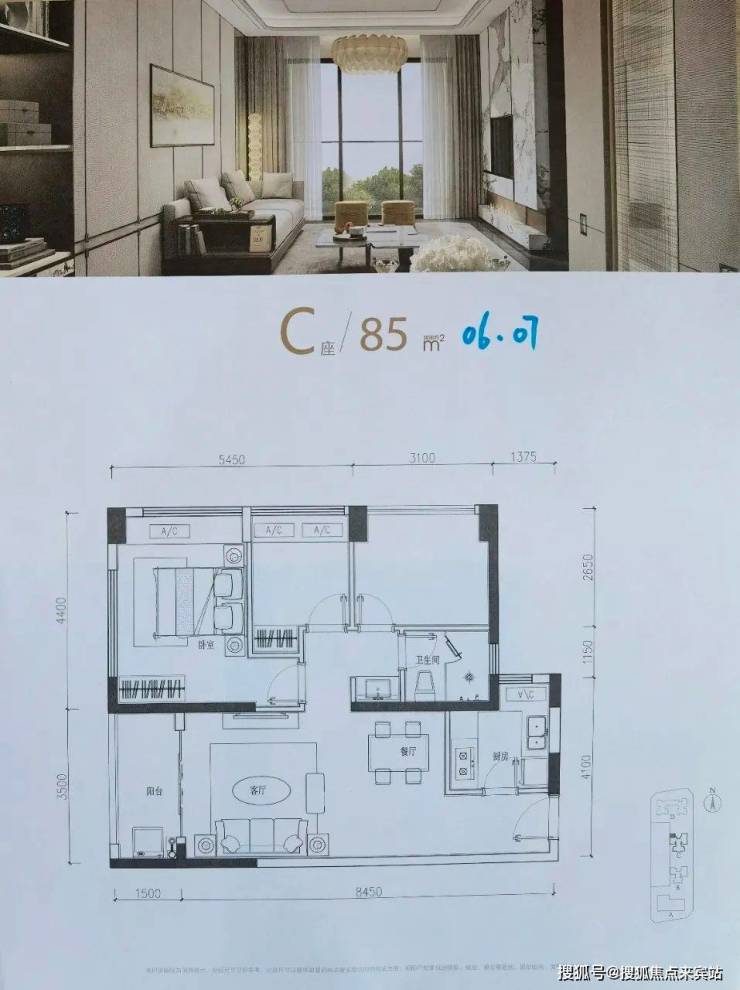 C座06、07户型:85㎡ 3房2厅1卫