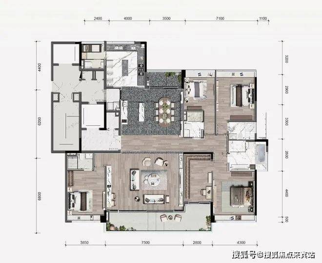 臻颐府的户型设计注重舒适性与实用性,尤其是高层设计和大面积空间的使用,使得每个细节都更显奢华。以265㎡的热销户型为例,采用南北对流设计,四开间朝南,采光效果极佳。每个单元配有3.5米的层高和双阳台设计,约9米的南向景观阳台带来极致视野。此外,290㎡的楼王户型更是全城稀缺,约80㎡的客餐厅、45㎡的主卧和奢华的高层视野,完美诠释了豪宅应有的尺度和气度。