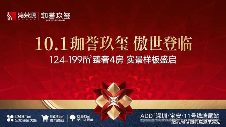 深圳珈誉玖玺(别名:鸿荣源·珈誉玖玺)是鸿荣源集团在沙井核心板块打造的高端住宅项目,总建面约248万㎡。项目位于宝安大道与凤塘大道交汇处,主推124-199㎡大户型,南北通透,专梯入户。周边有大型购物中心、名校资源等优质配套,交通便利,是深圳西部的大型综合体大盘,为购房者提供舒适便捷的高品质生活。