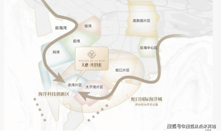 天健湾时代府(推广名:天健・湾 TIME),坐落于南山区赤湾六路与天后宫路交汇处东侧,是前海蛇口自贸区与蛇口国际海洋城双芯交汇的纯商品低密海景改善住区,由天健集团(国企)全资子公司深圳市天璟置地开发,天健物业自持管理,以稀缺海景、高得房率、纯粹社区,定义南山赤湾改善新标杆 [8][12]。
