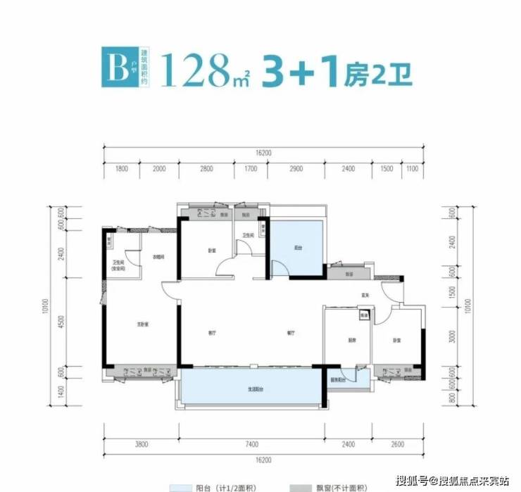 128㎡ 3+1房2厅2卫,折后总价约141-166万,折后单价约1.1-1.3万/㎡。
