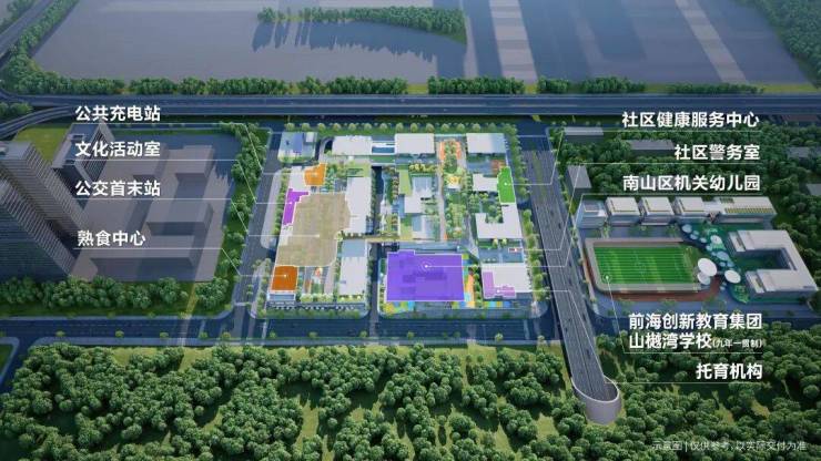 家门口配建托育机构、南山TOP1机关幼儿园,前海创新教育集团九年一贯制山樾湾学校(建设中)、一所初高中教育用地。