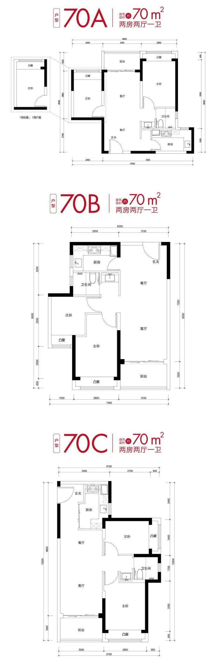 💎户型:建面约70㎡两房、建面约90㎡三房两卫