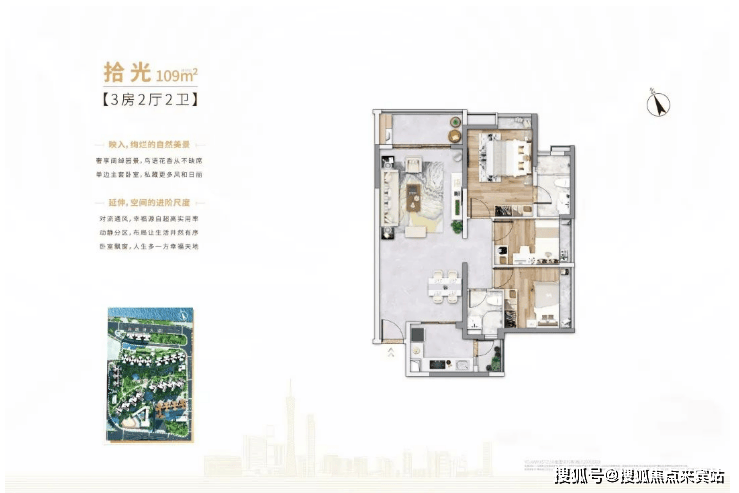 户型是建面约80-143㎡南向江景的新品,主力户型建面约109㎡全南名校主套三房、建面约122㎡天幕江景学府四房。